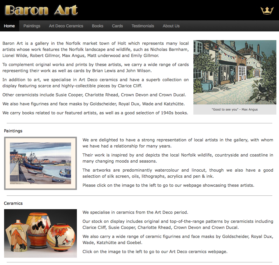 Some art photography and copy was made available by the gallery but we were responsible for sourcing and writing much of the website content.